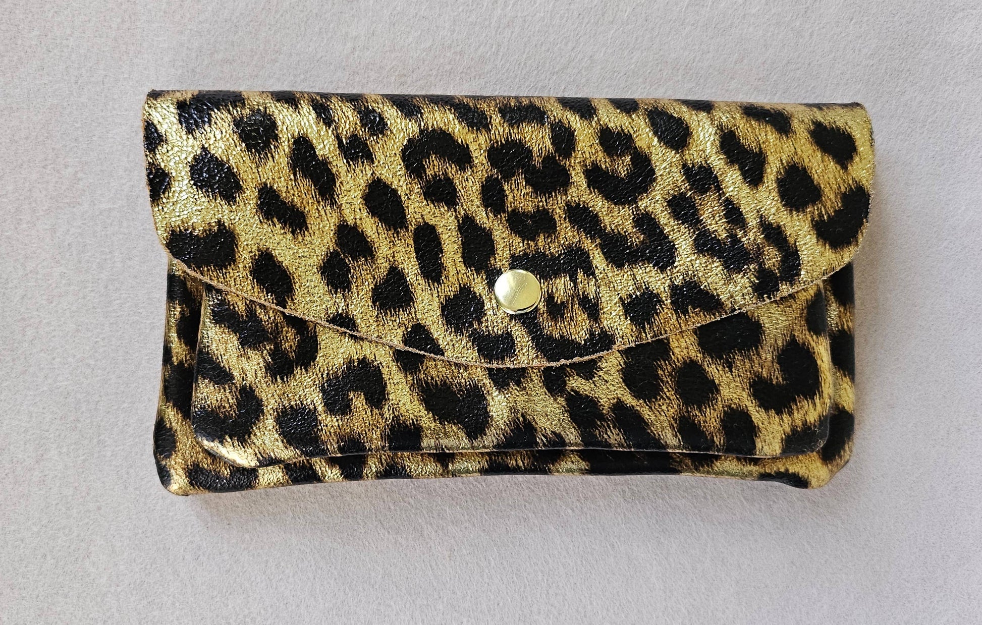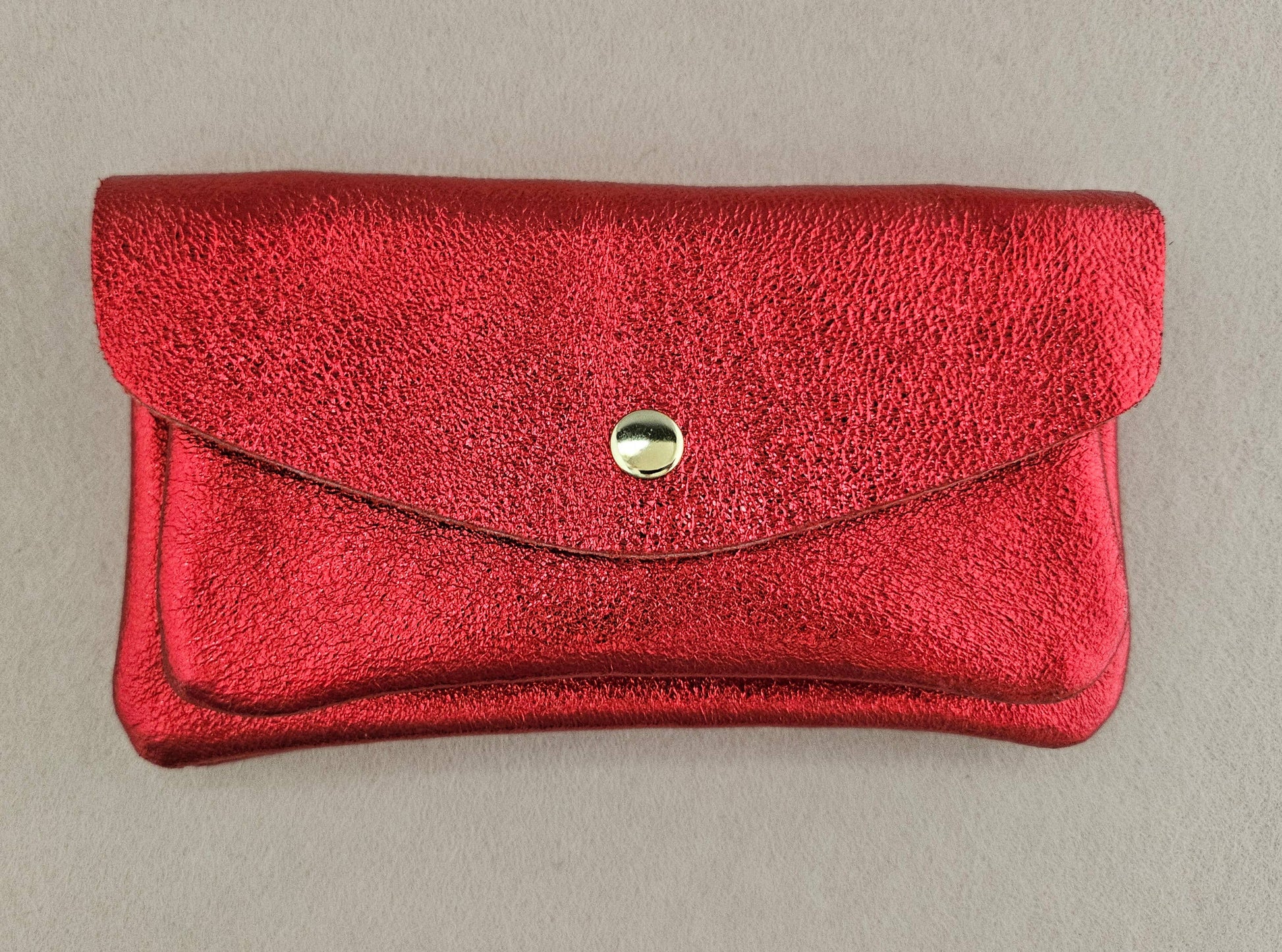 - metallic leather wallet - one pocket + one zipped pocket + one slot - golden snap flap