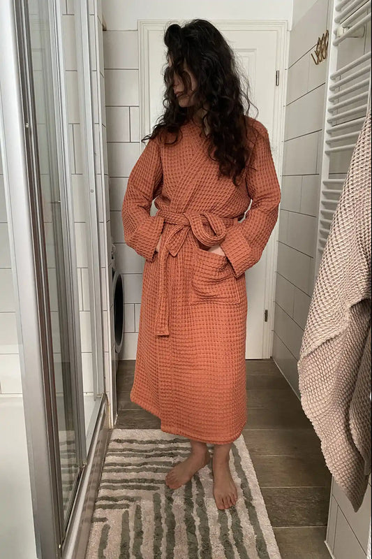 Pamuk Waffle Bathrobe – Grapefruit - 100% cotton